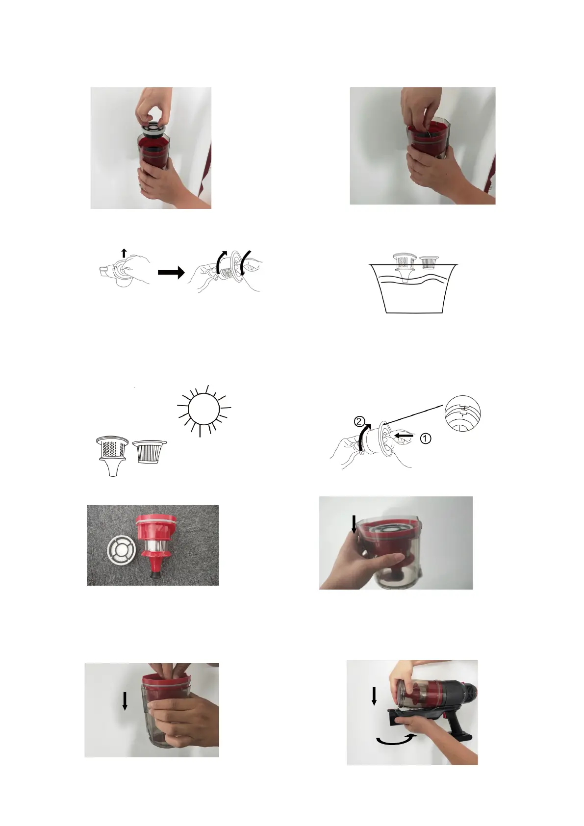 8Assemble the dust cup to handle correctly after