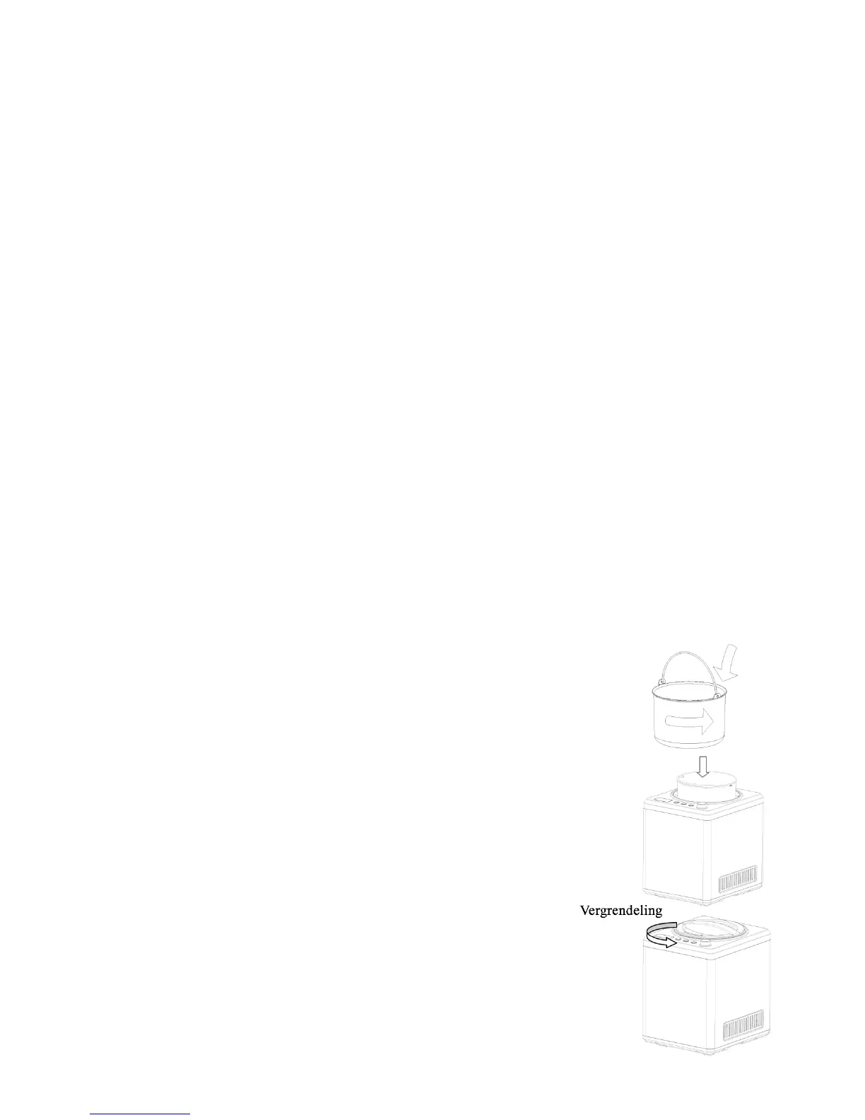Belangrijk: Altijd de ijsmachine rechtop op een vlak ondergrond zetten om te zorgen dat de
