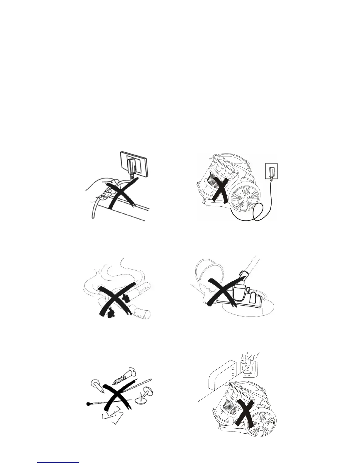 6. No use la aspiradora sobre o cerca de superficies calientes o fuentes de calor.