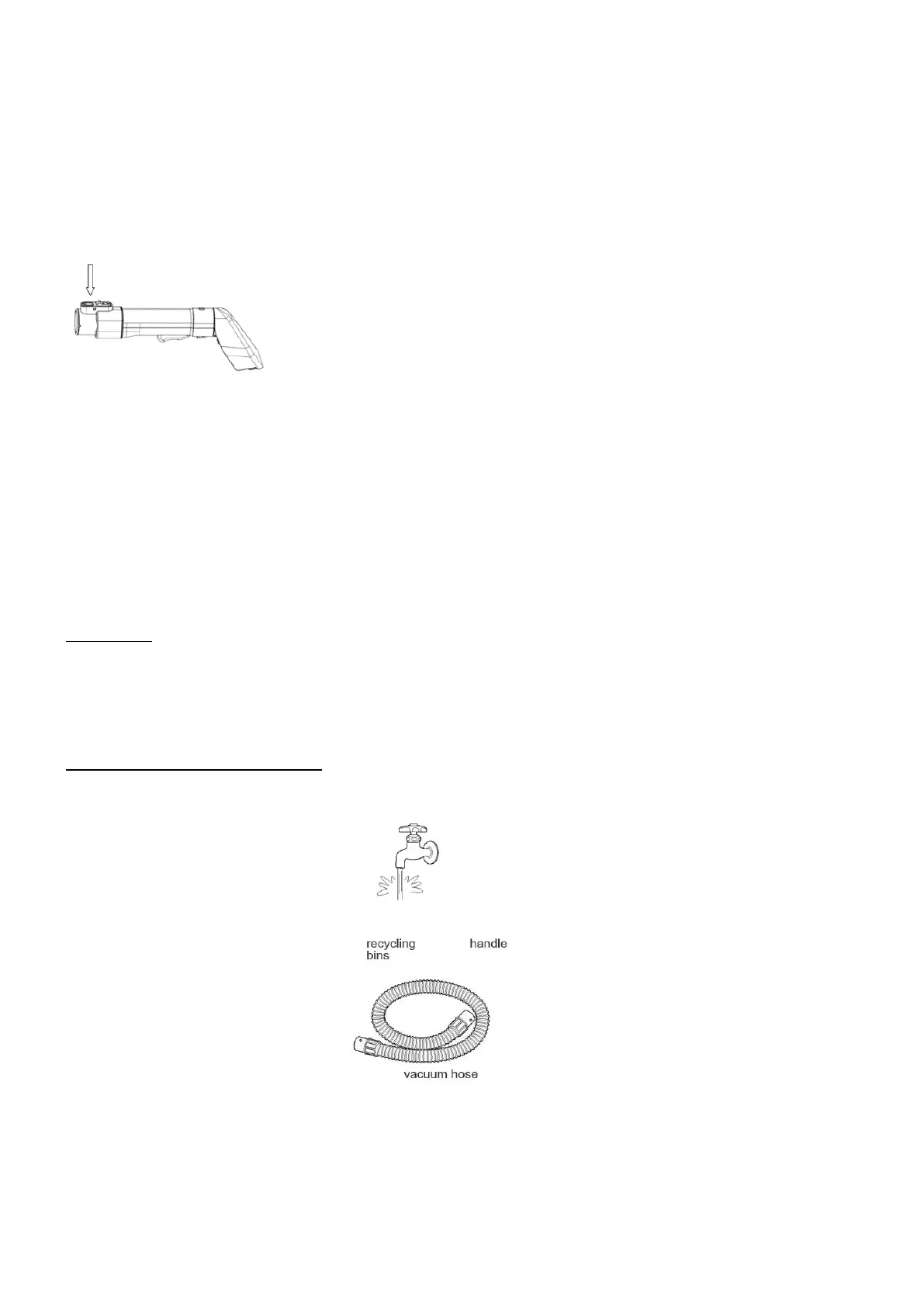 Handle, dust bin, vacuum hose