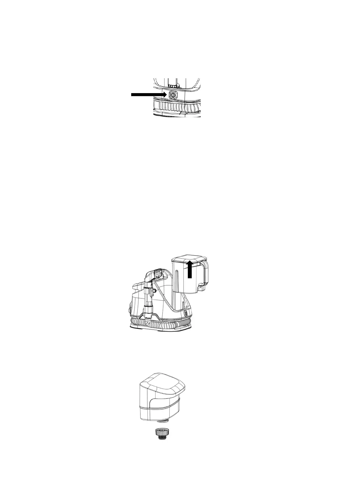 Wassertank. Entfernen Sie den Saugschlauch und den Griff zur Aufbewahrung.