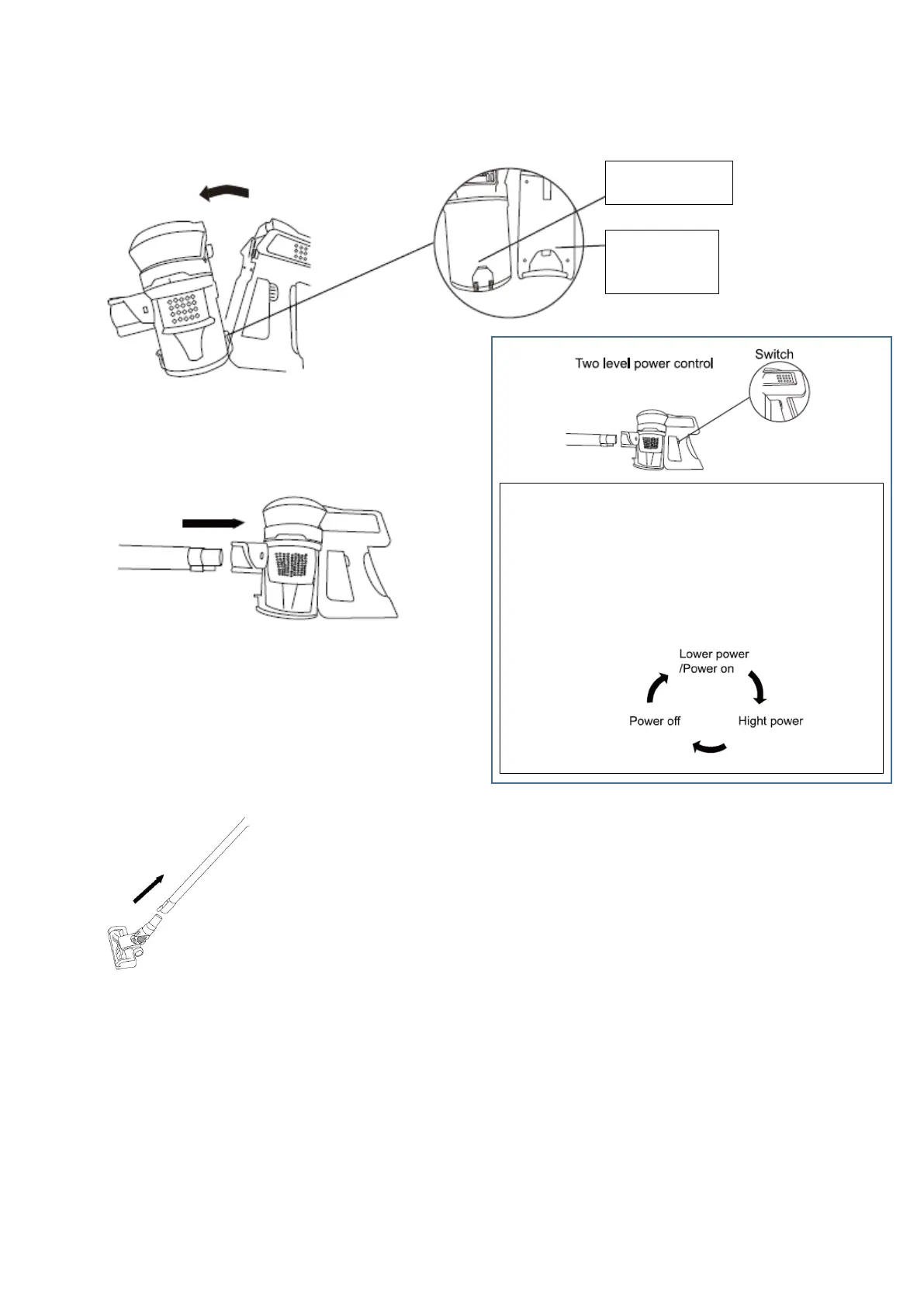 a) Assemble the battery into the dust cup, make sure the battery bolt head insert the dust cup