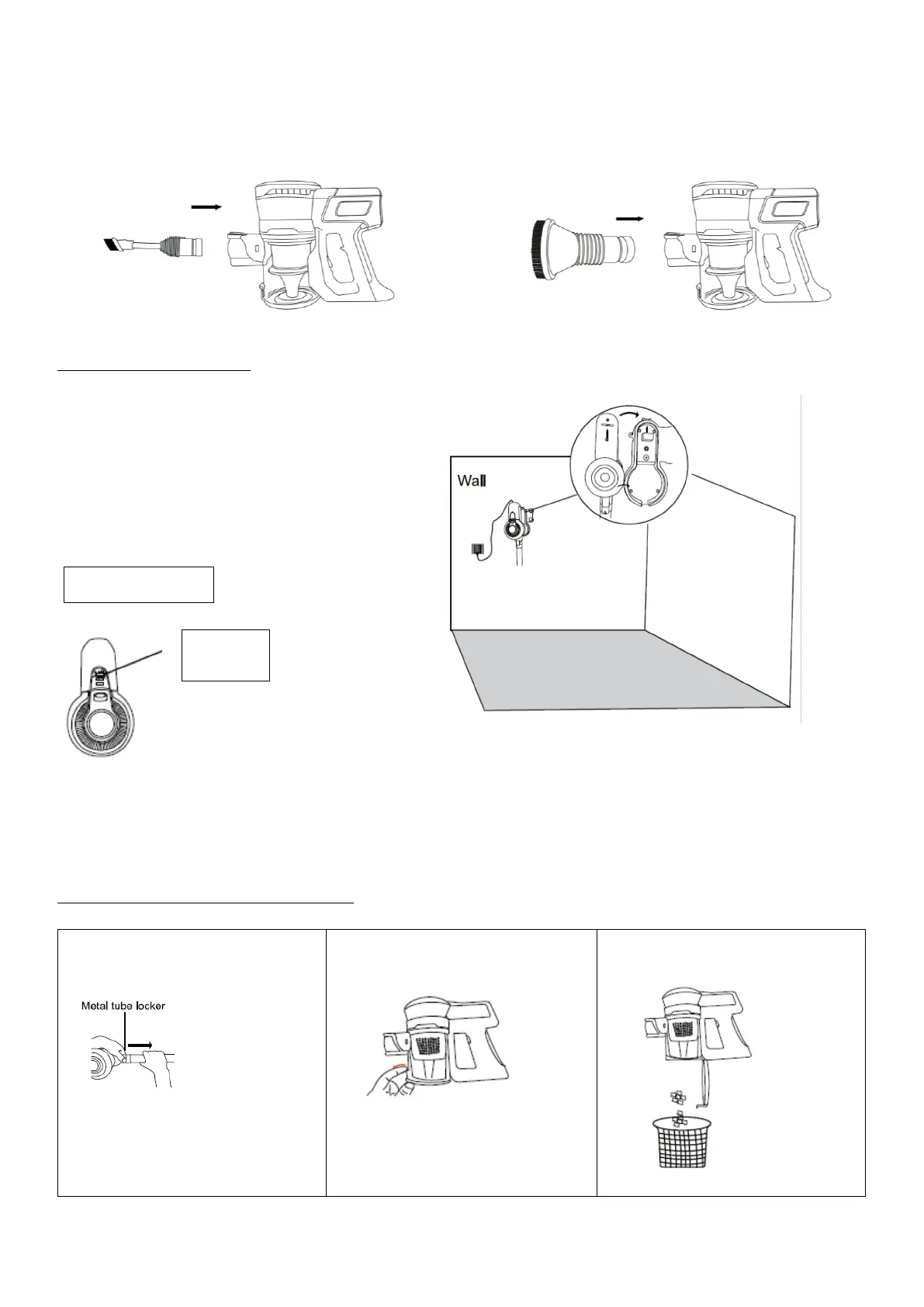 Insert the accessory (2in 1 crevice or round brush) to body as below showed