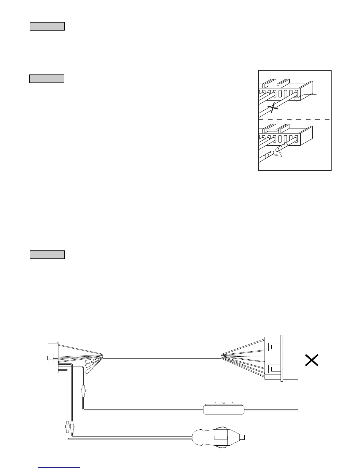 ・Connect the white/black wire of the power socket harness to the pink wire of the OBD2 harness.
