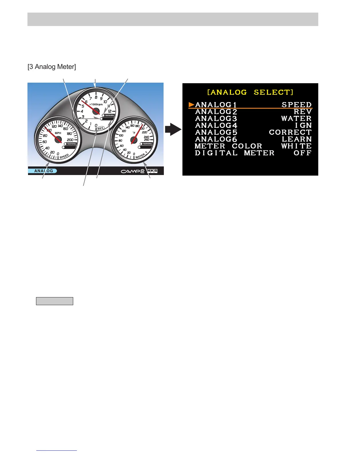 ・Only ANALOG 1 to 3 can be shown on the screen as the analog meter. ANALOG 4 to 6