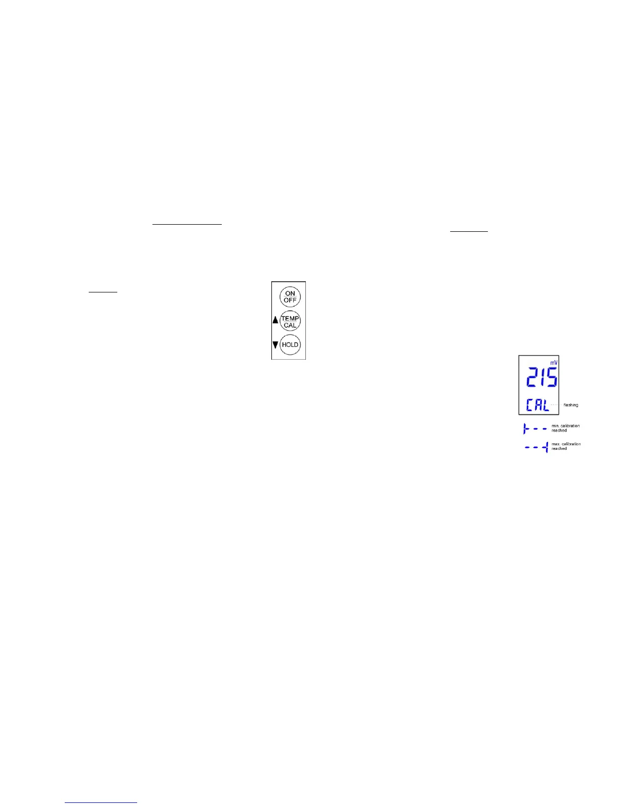 6. To set the calibration, press and hold the ‘TEMP/CAL’