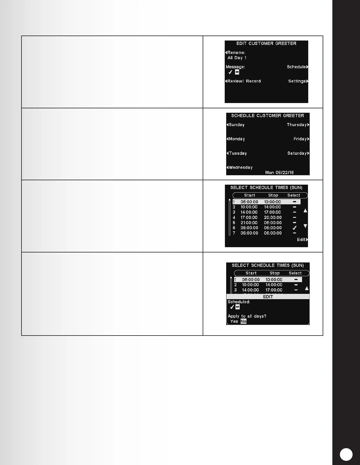 2. On the SCHEDULE CUSTOMER GREETER display,
