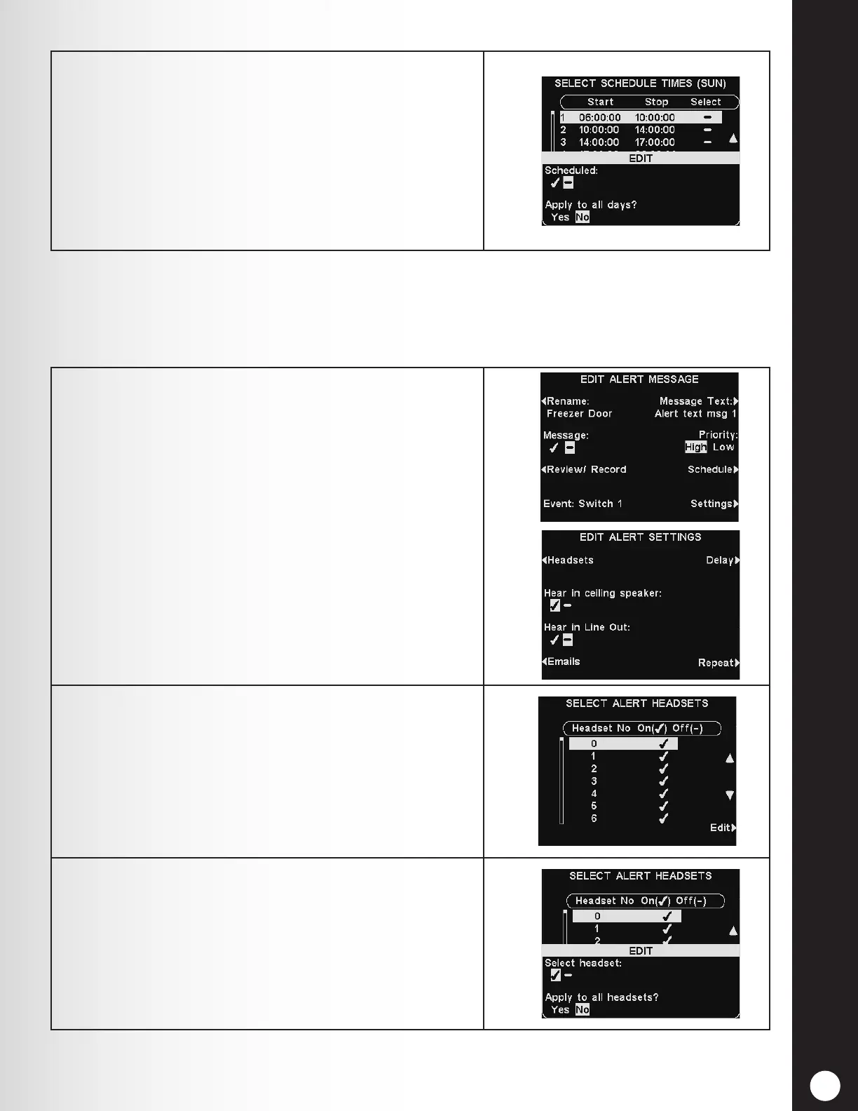 Then, press the Headsets button on the EDIT ALERT