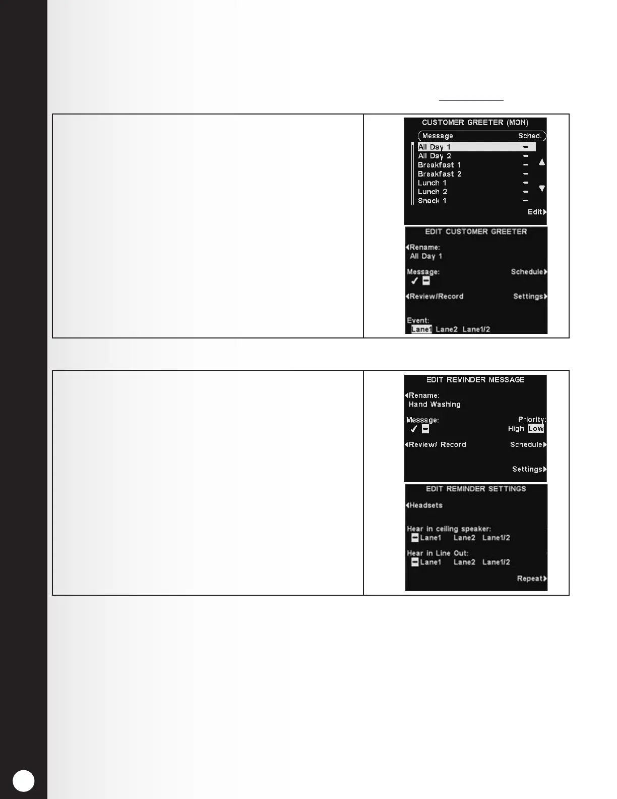 You can access Message Center Settings by pressing the Menu button on the LANE STATUS display,