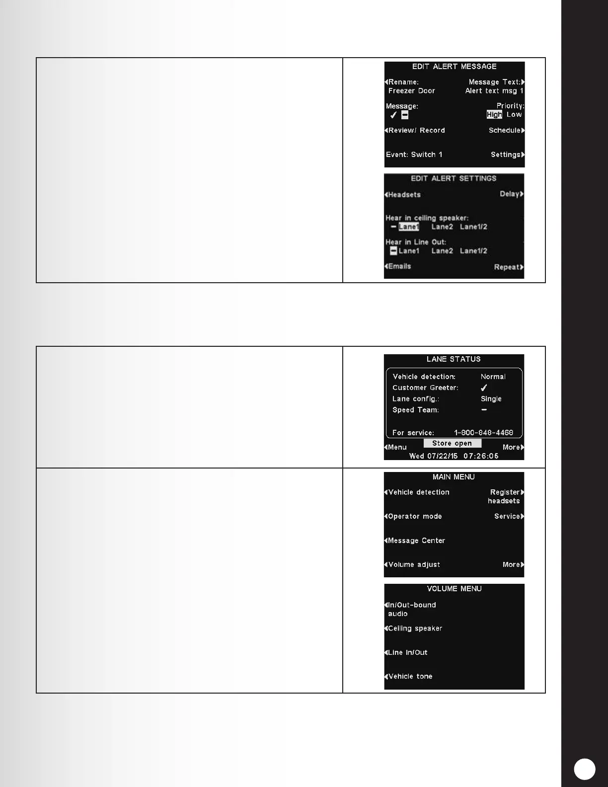 Adjust the volume for inbound and outbound audio, customer greeter messages, ceiling speaker and