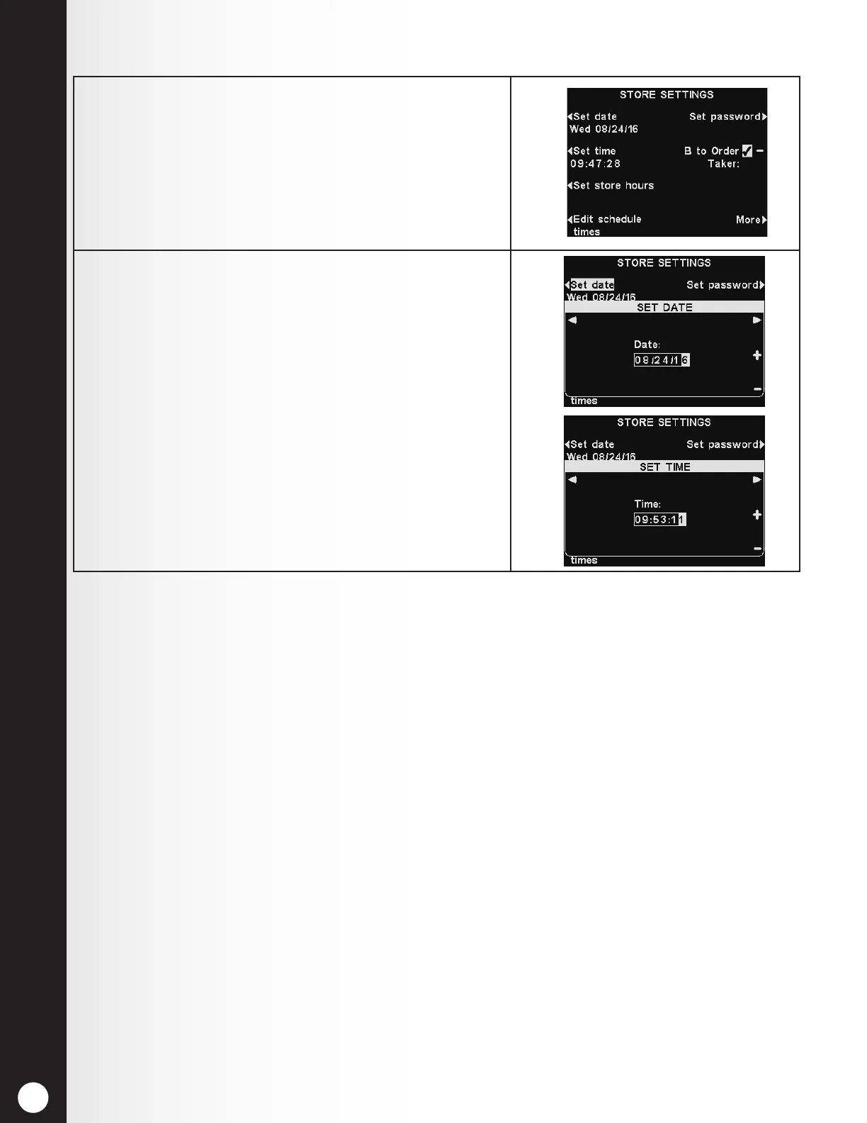 time button on the STORE SETTINGS display.