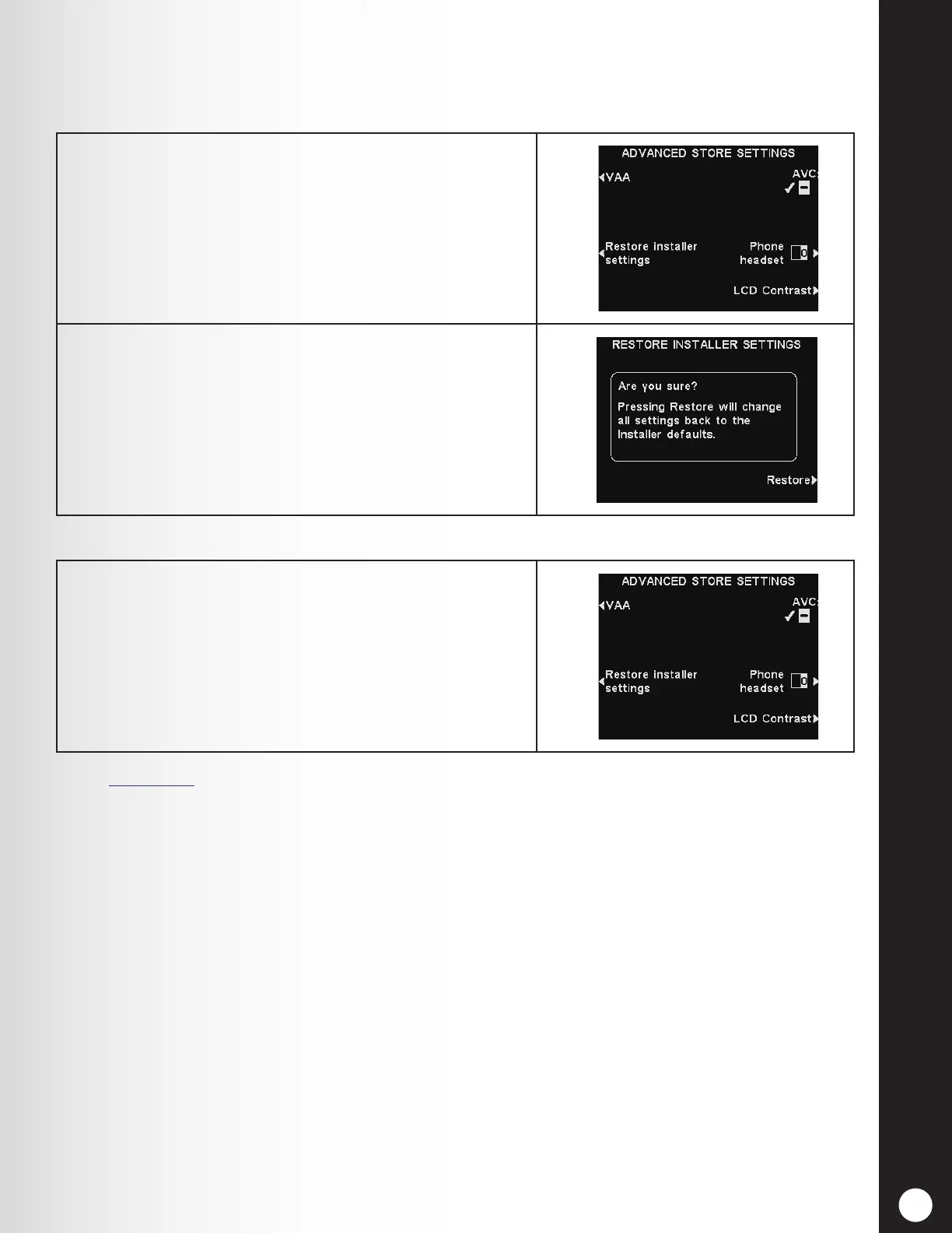 INSTALLER SETTINGS display.