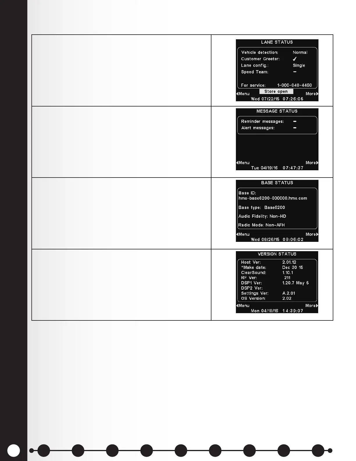 status information. It also lists the HME Technical