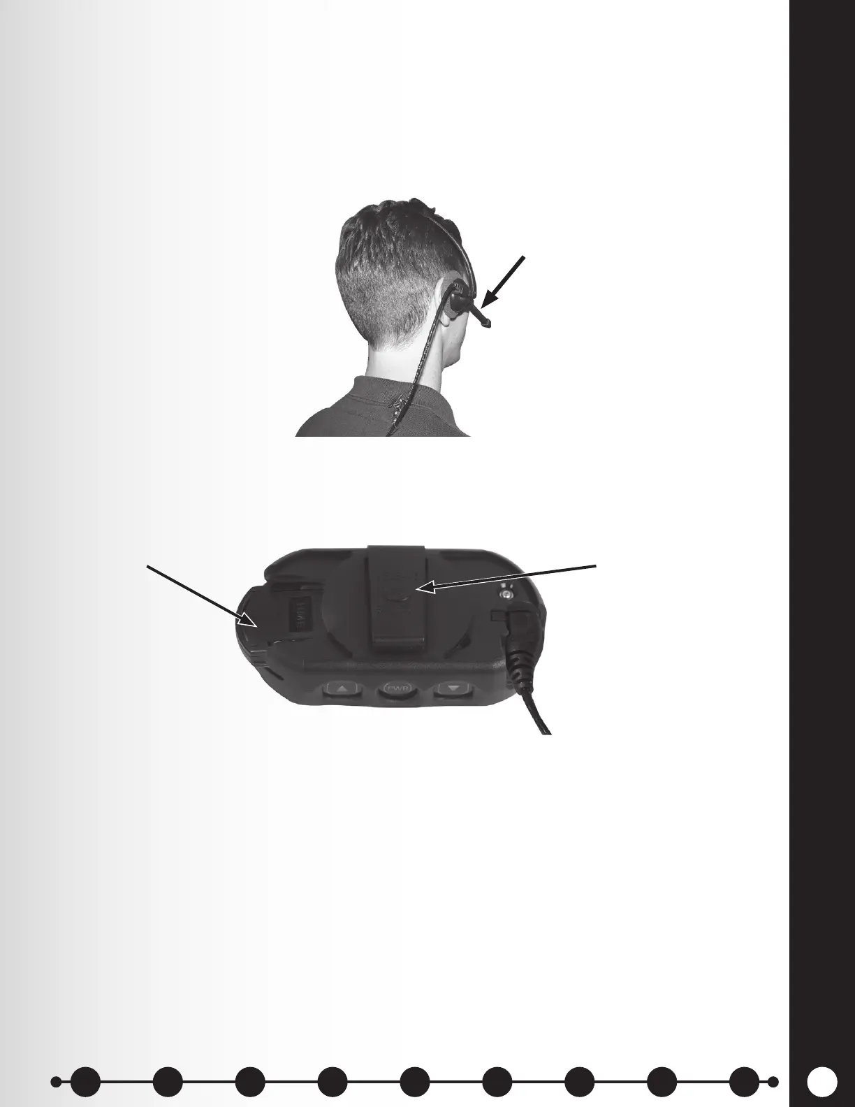 h Wear the headset with its cable behind your back and attach the clothing clips to your collar