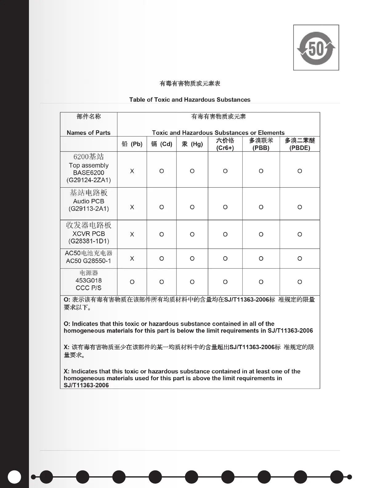 HME EOS HD - Table of Toxic and Hazardous Substances