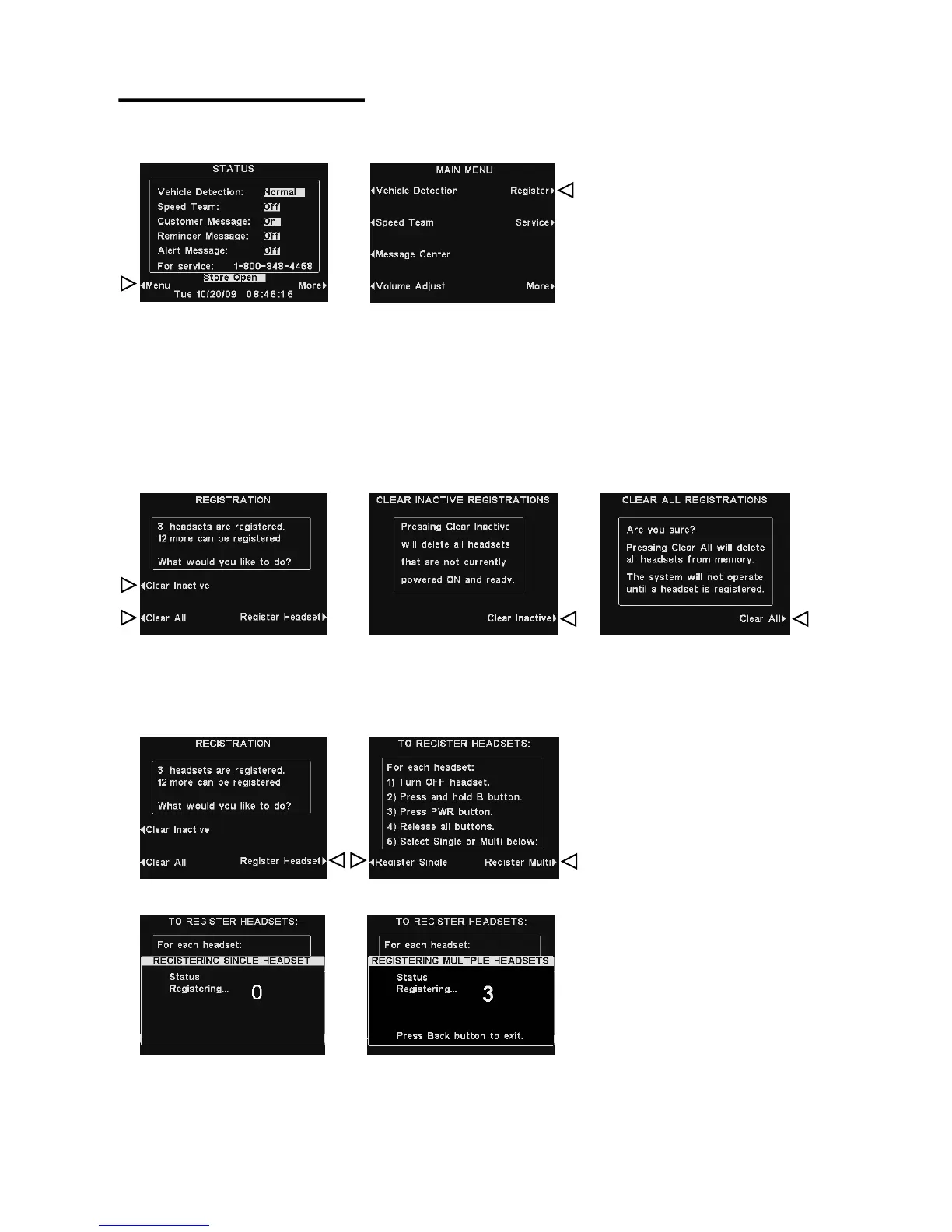• To register headsets, press the Register Headset button on the REGISTRATION display.