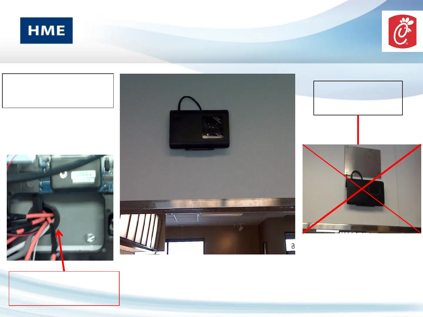 HME IC300 - EOS Base Mounting Guidelines; Proper EOS Base Mounting; Prohibited EOS Base Mounting; Plate Notching for Cables