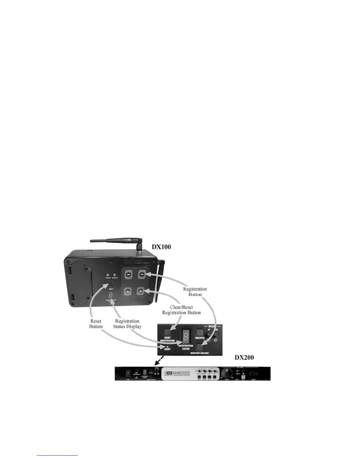 Figure 3. Registration buttons and indicators in DX100 and DX200 base station