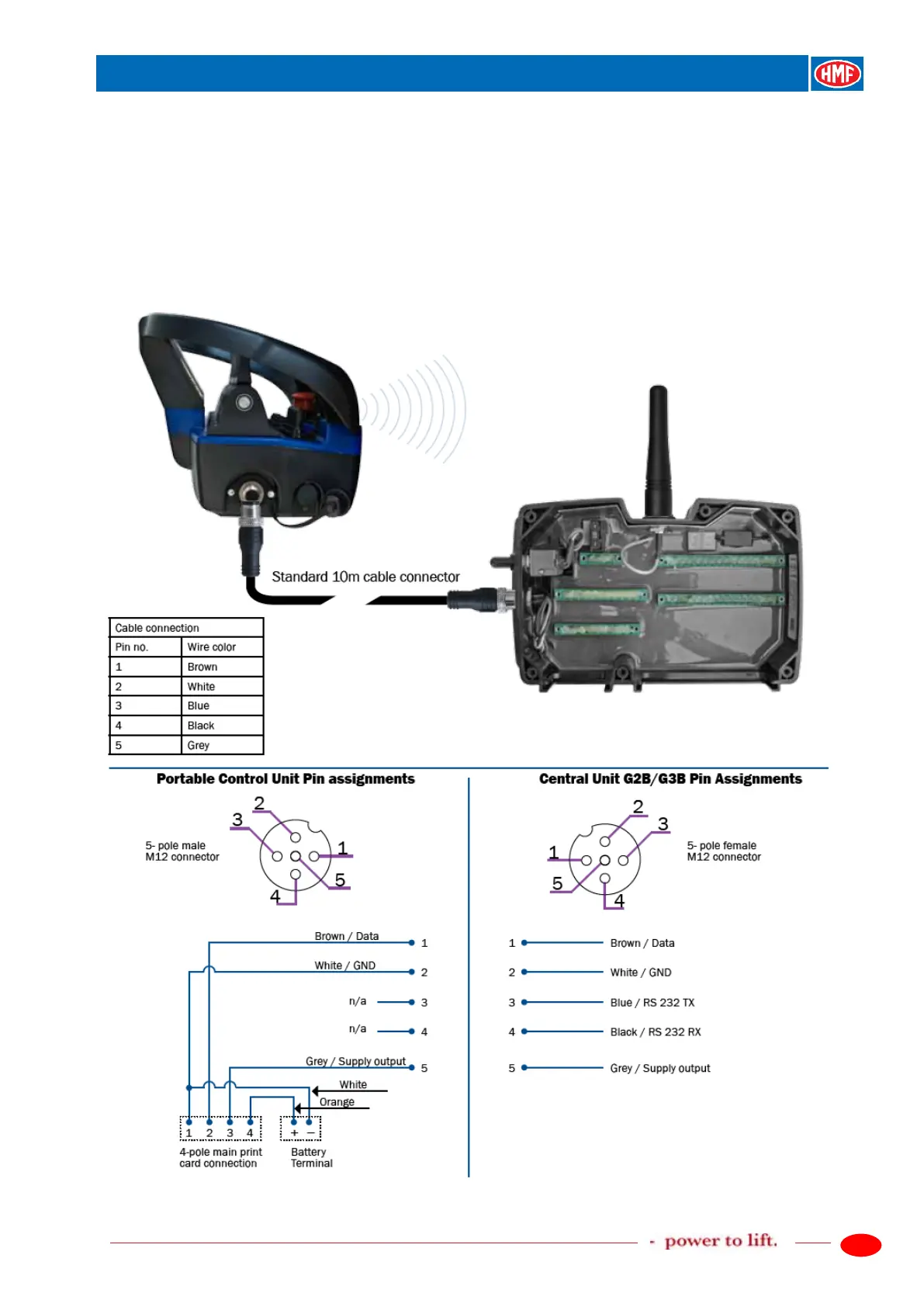 It is possible to remote control the crane by fitting a 10 m remote control cable between the radio