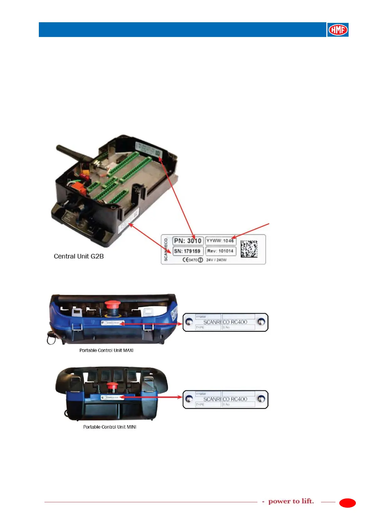 All radio controllers and remote control boxes are marked by a label, stating the part number and