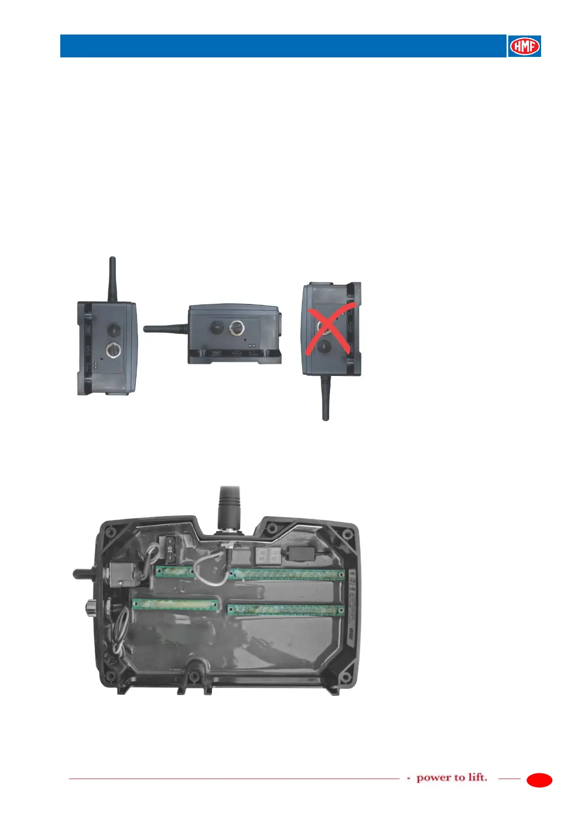 • The electric cables must turn downwards and away from the radio controller.