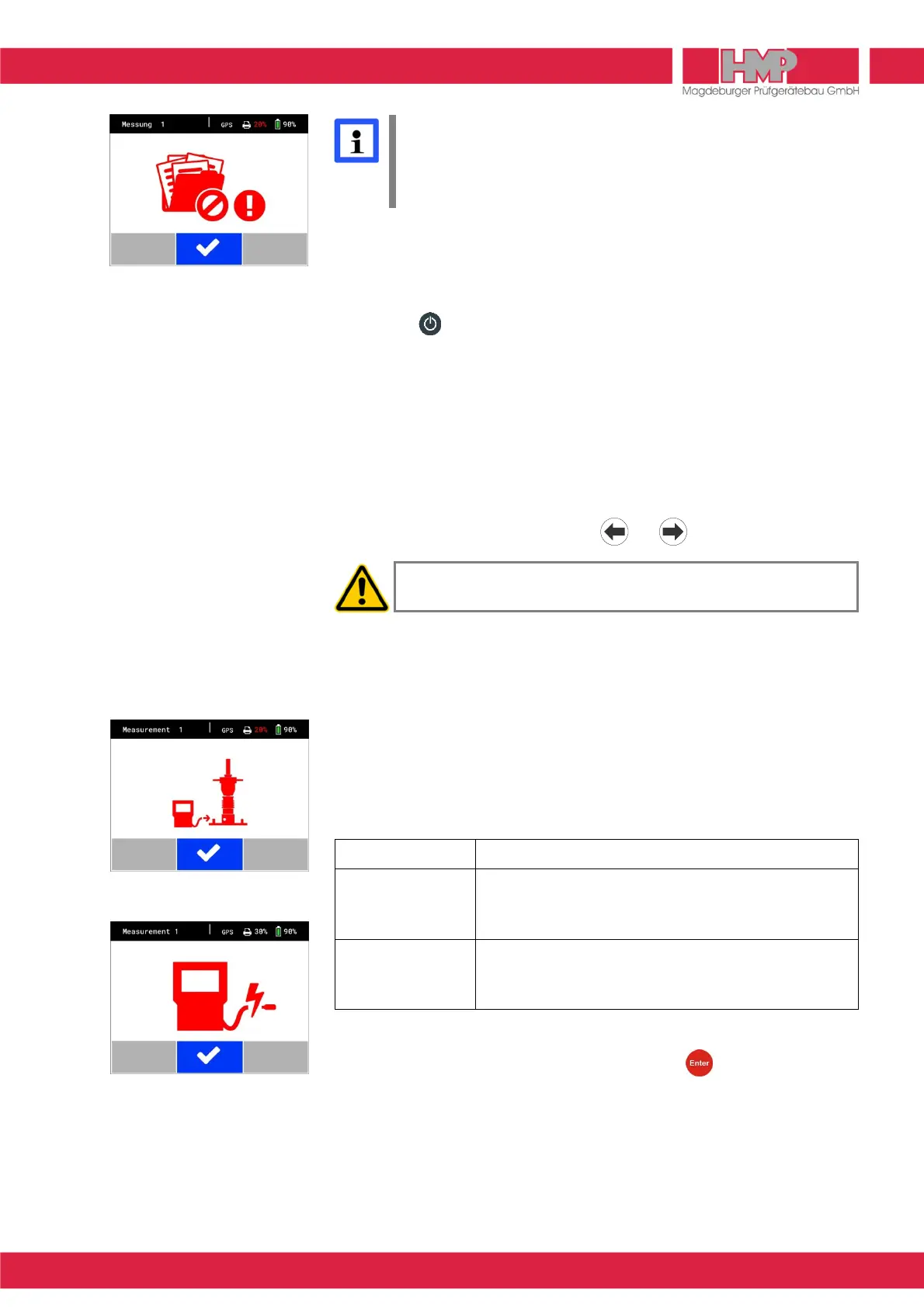 Restart the measuring process by pressing the key, as soon as the