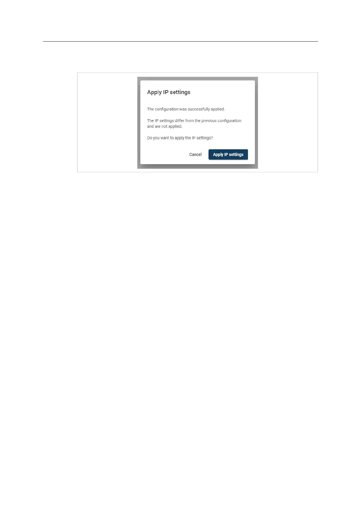 If you have made changes to the IP settings you are prompted to apply these settings.