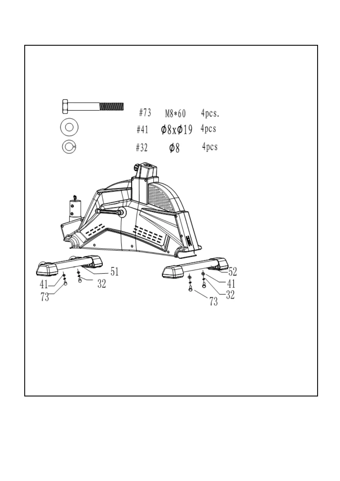 4. Attach rear stabilizer (52) to the main frame (1) using 2 screws73), 2 washers32) and 2 washers (41).