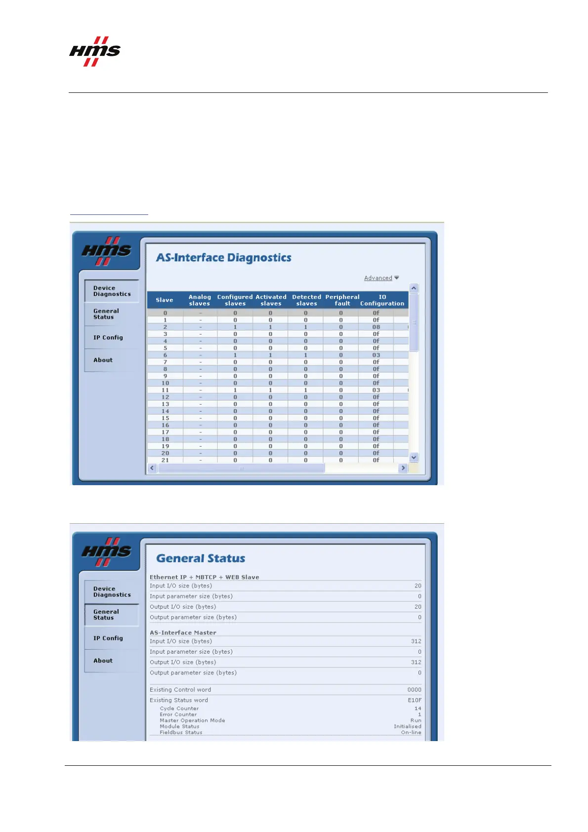 Figure 19 Viewing the AS-Interface Diagnostics in the web interface.