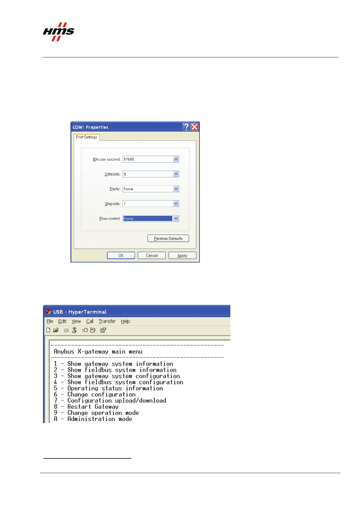 Use the HyperTerminal on a PC to configure the X-gateway. Connect a serial cable between the PC and the