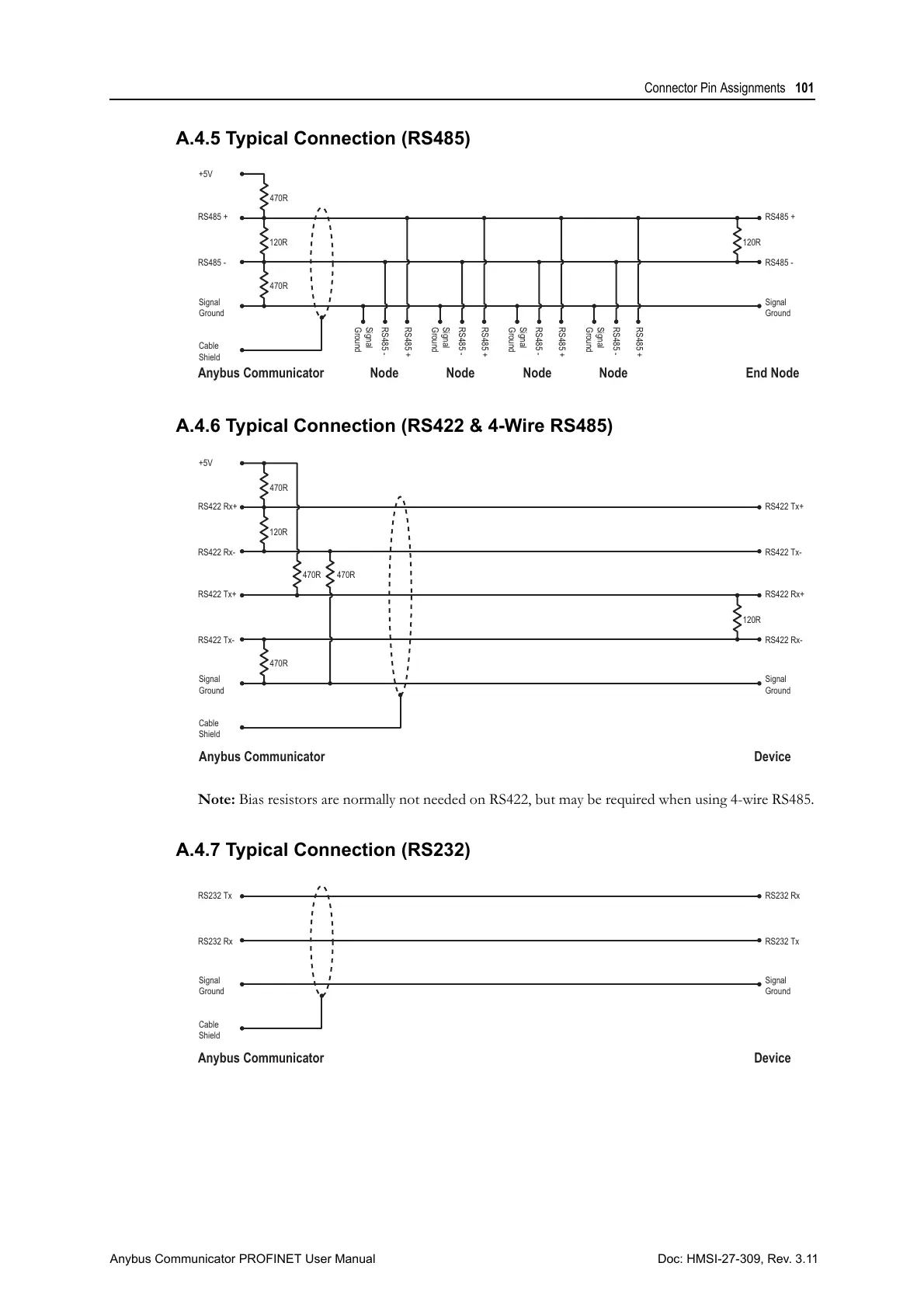 Note: Bias resistors are normally not needed on RS422, but may be required when using 4-wire RS485.