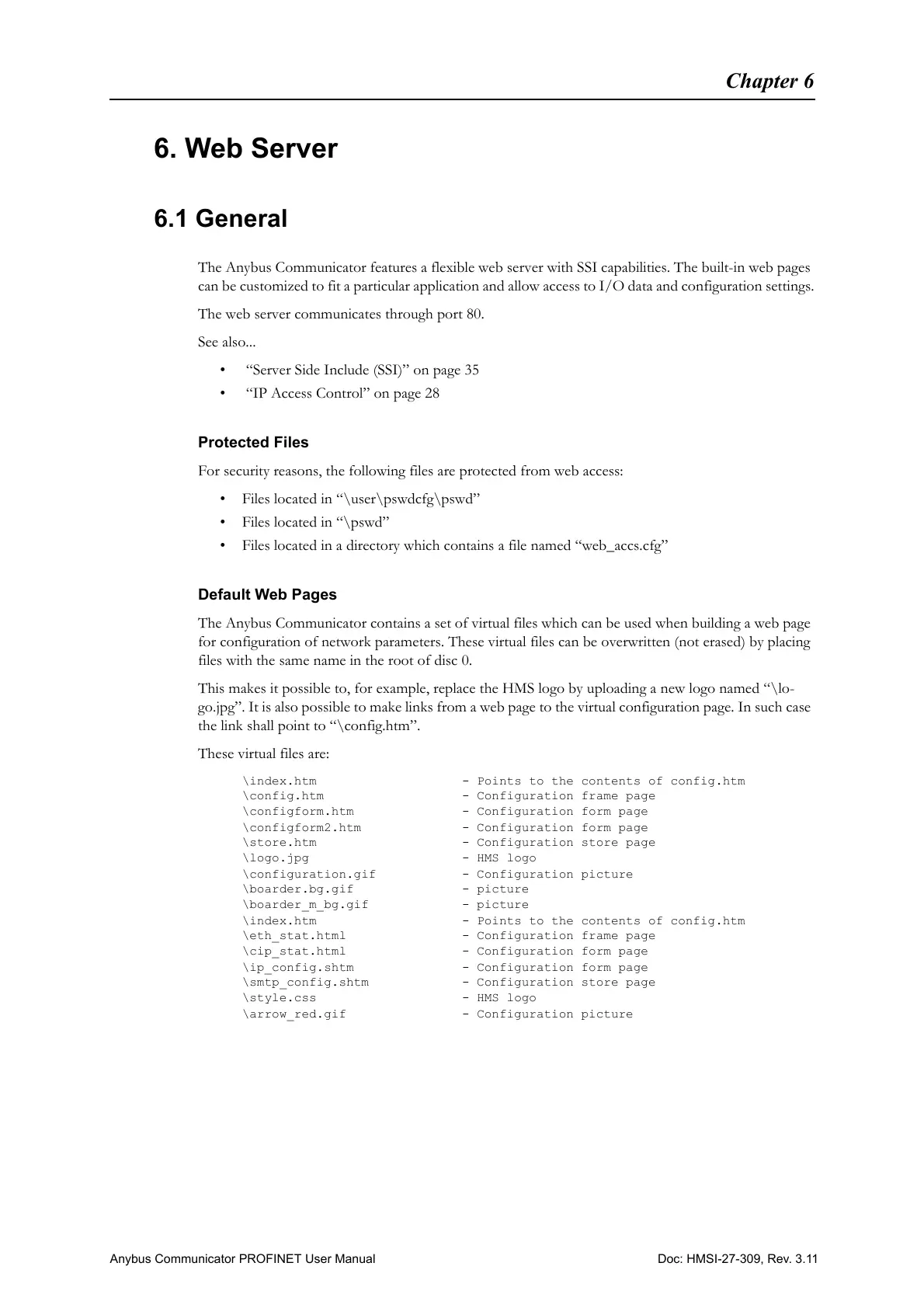 The Anybus Communicator contains a set of virtual files which can be used when building a web page