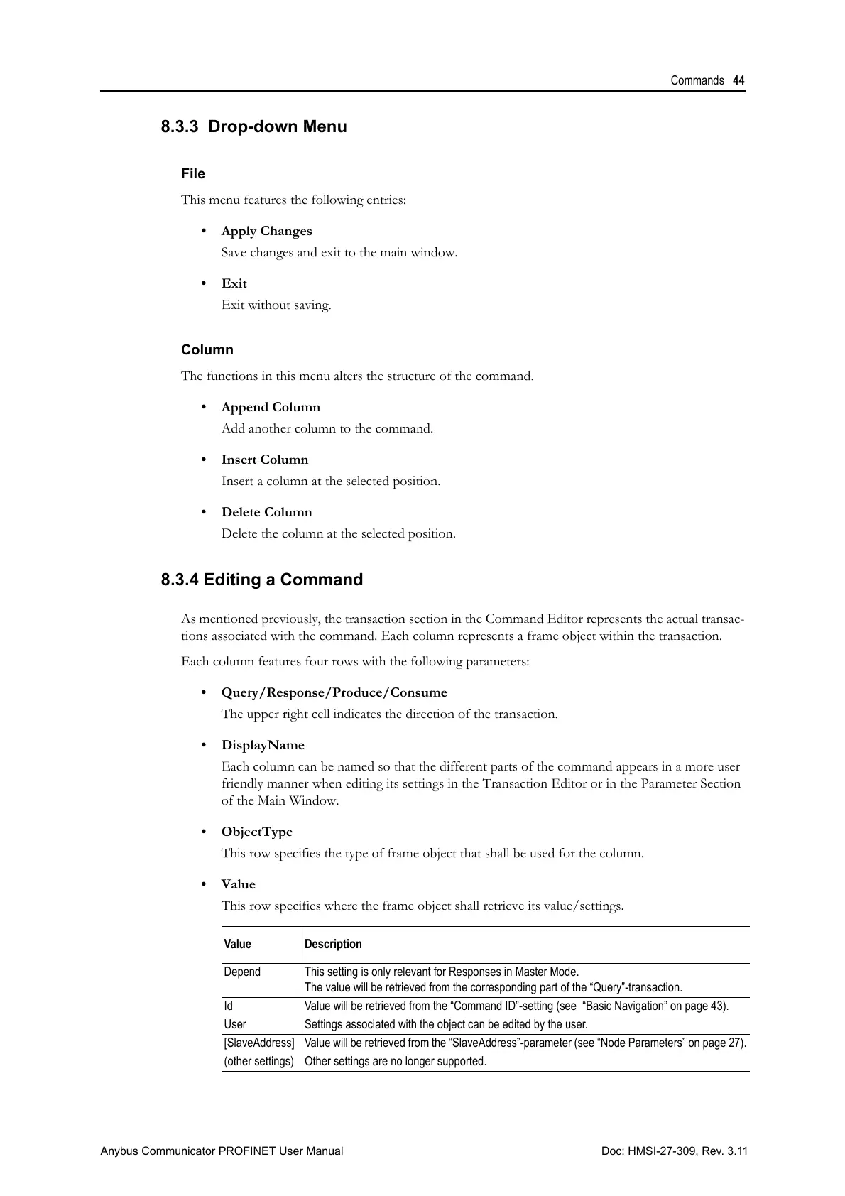 Id Value will be retrieved from the “Command ID”-setting (see “Basic Navigation” on page 43).