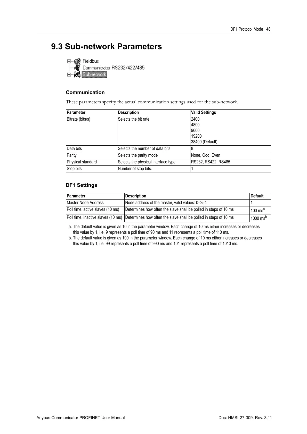 9.3 Sub-network Parameters