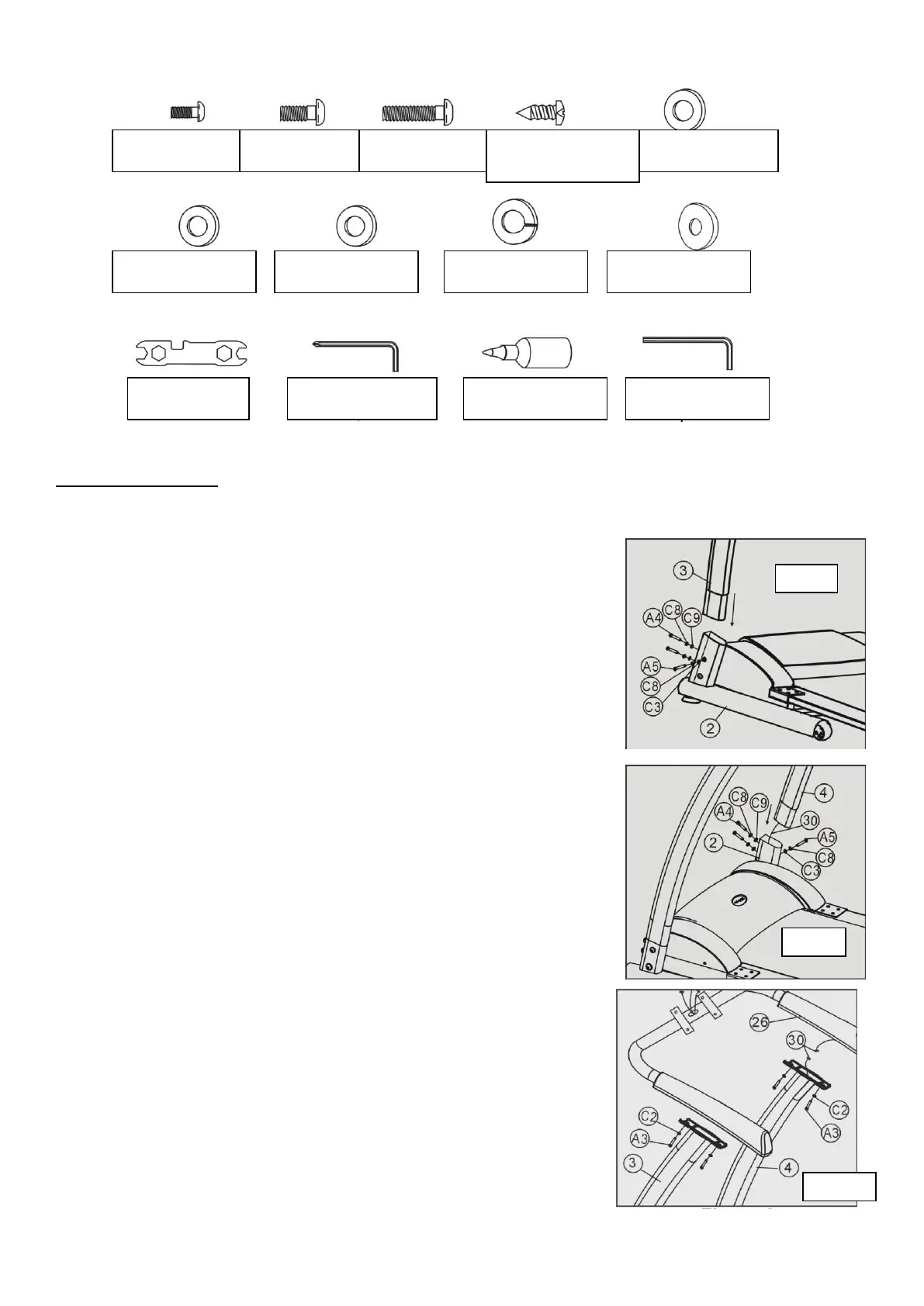 (C8) i (C9) (z przodu) oraz śrubą (A5) i podkładkami (C8) i (C3) (z boku). Nie dokręcaj ich