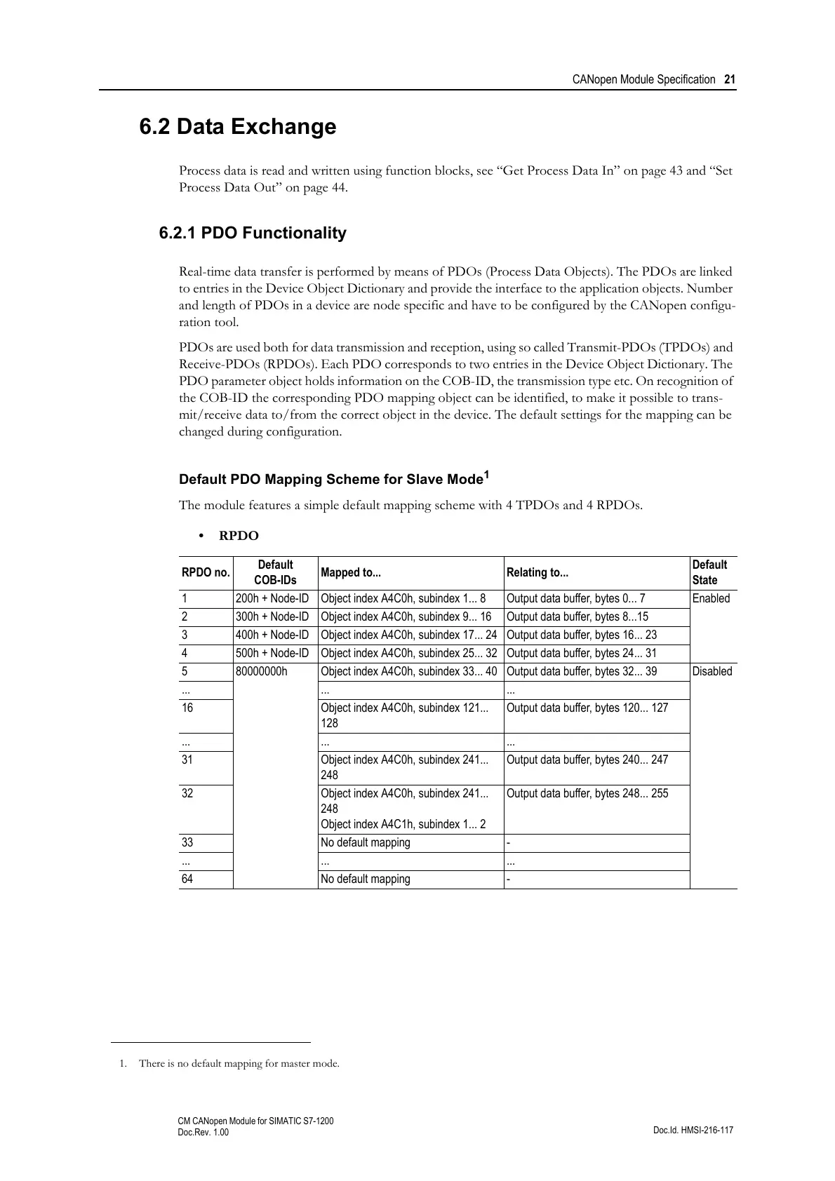Receive-PDOs (RPDOs). Each PDO corresponds to two entries in the Device Object Dictionary. The