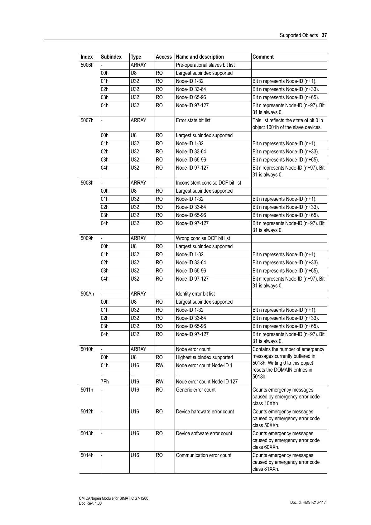 5007h - ARRAY Error state bit list This list reflects the state of bit 0 in