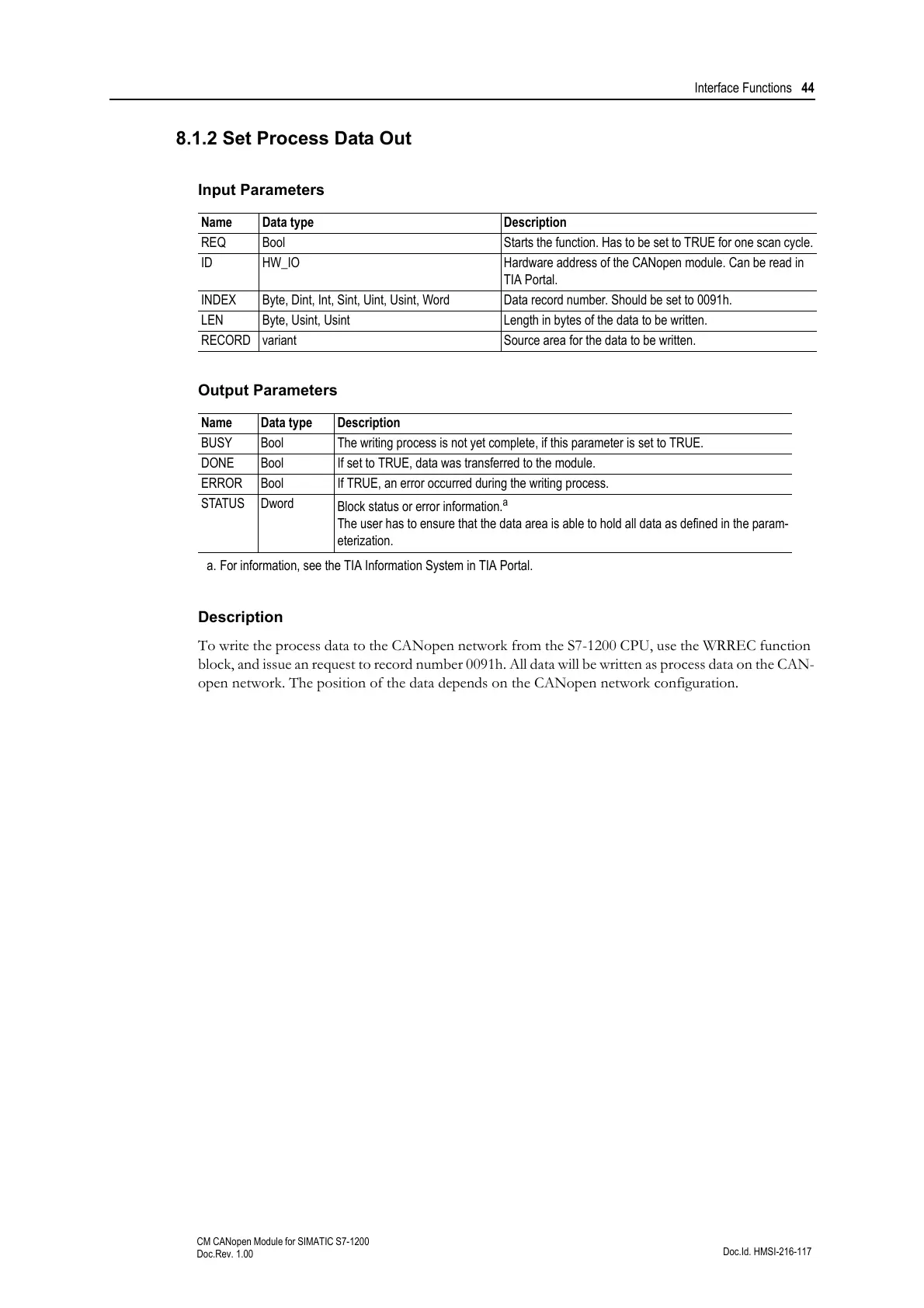 8.1.2 Set Process Data Out