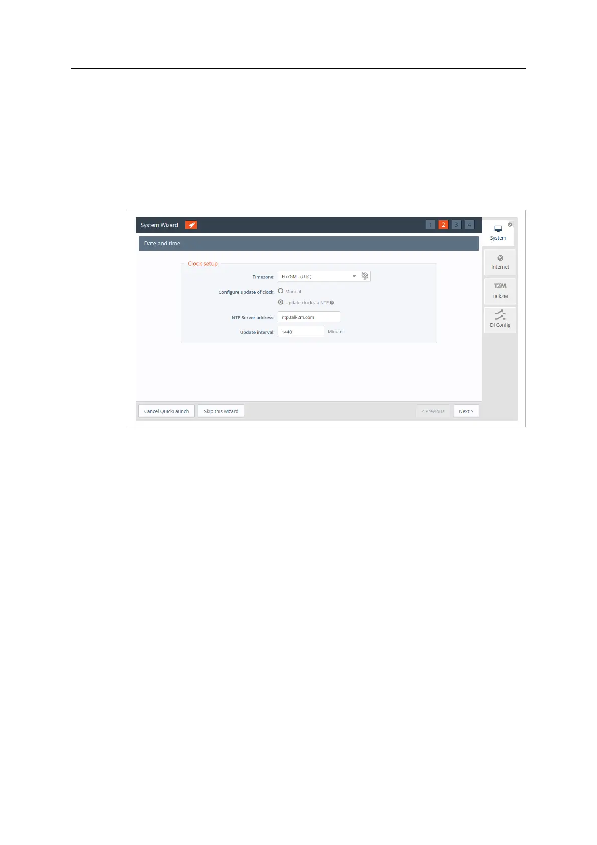 server>. This field is shown only if Update clock via NTP is selected.