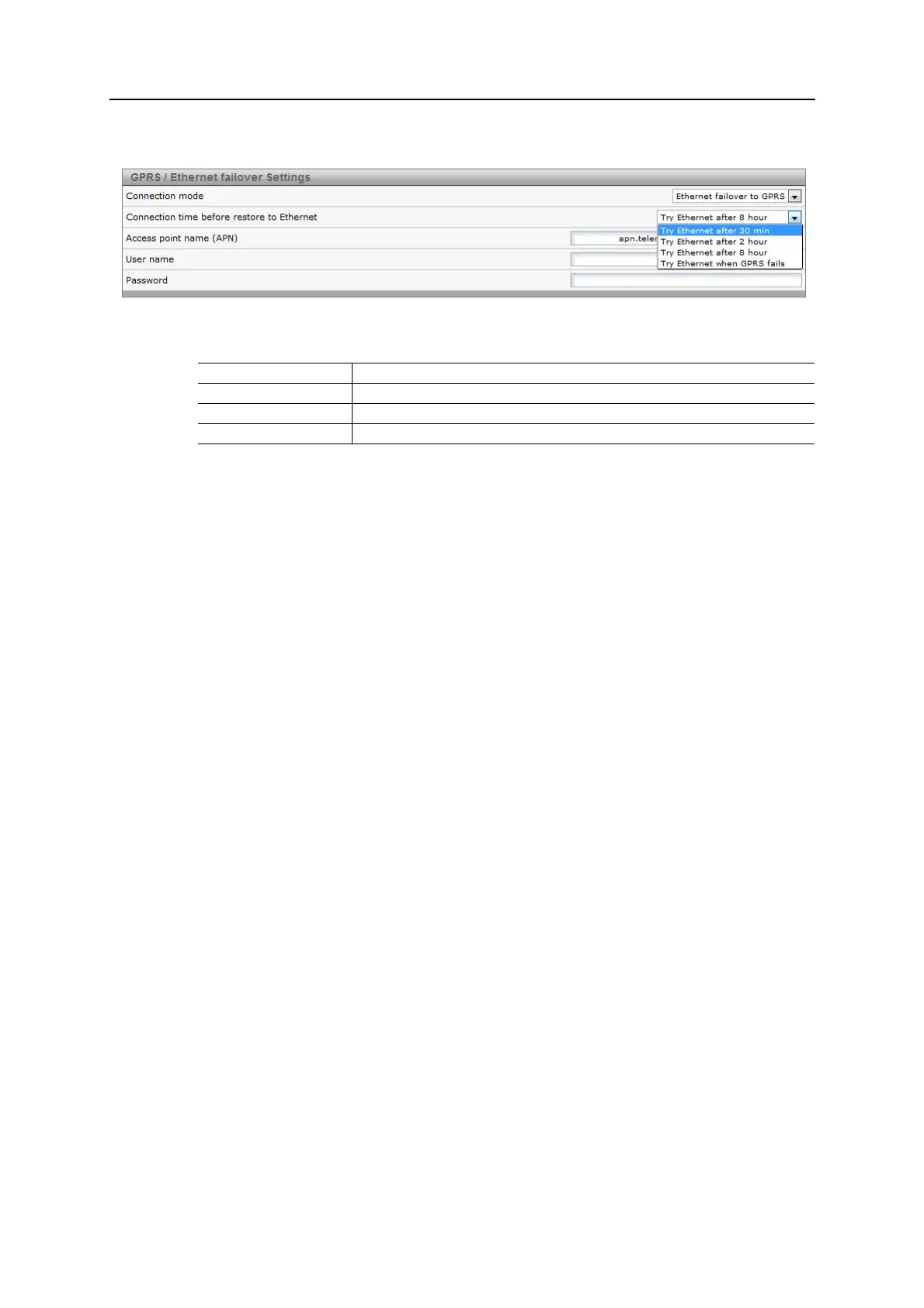 Ethernet failover to GPRS The unit will automatically switch to GPRS if Ethernet connection is lost.