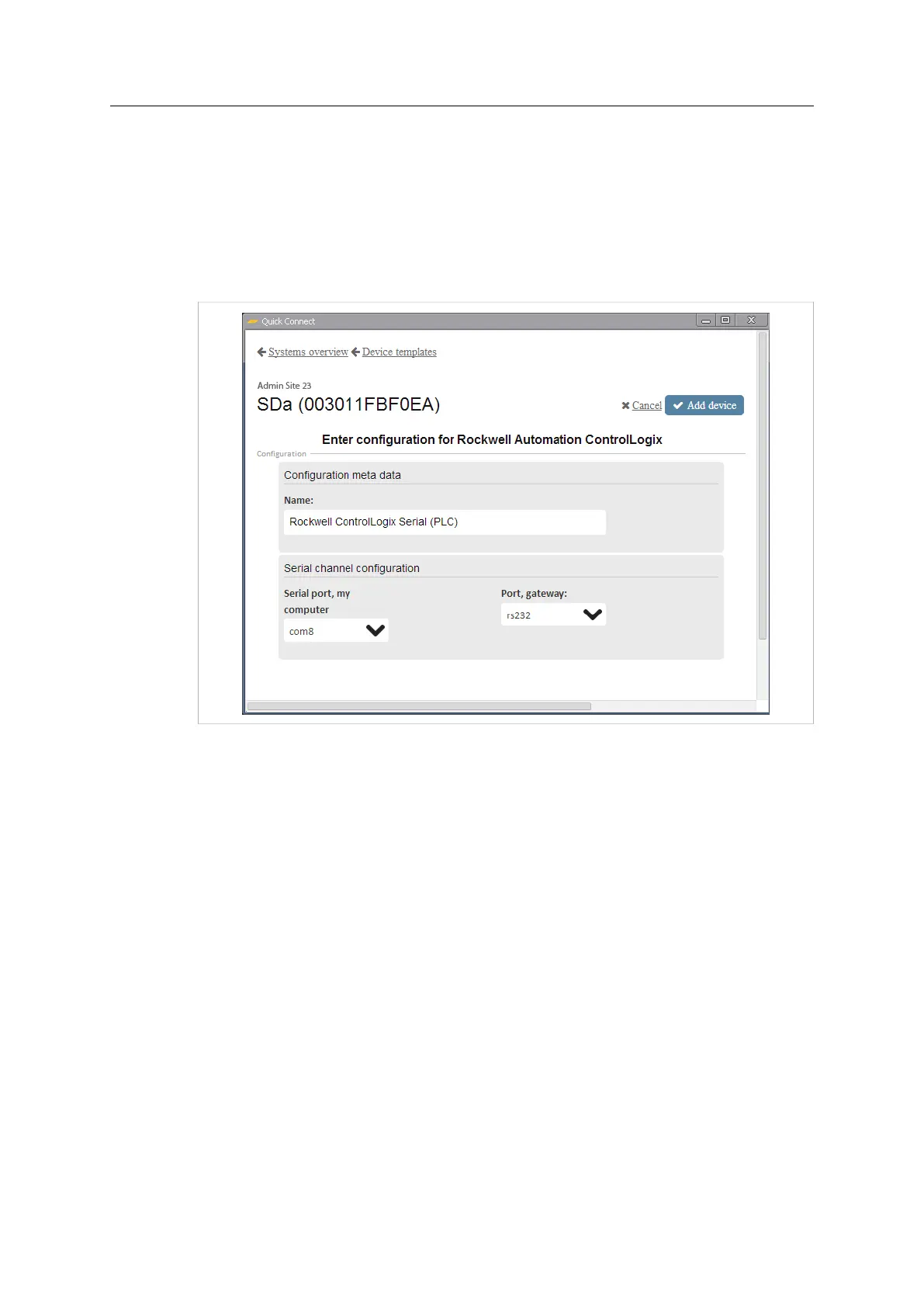 In a serial channel configuration, you need to select the virtual serial port on the computer