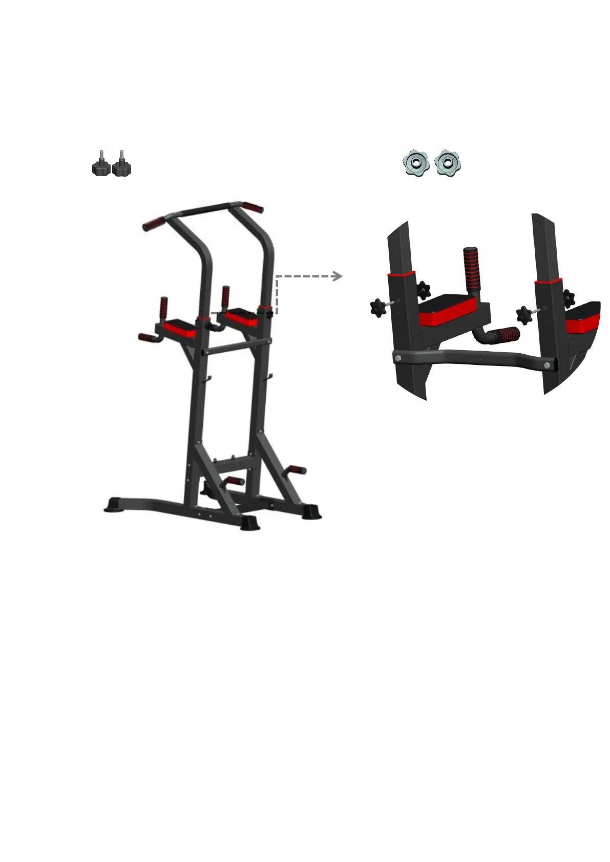 Stellen Sie die Höhe des Griffs mittels der Schrauben und Muttern M8 ein.