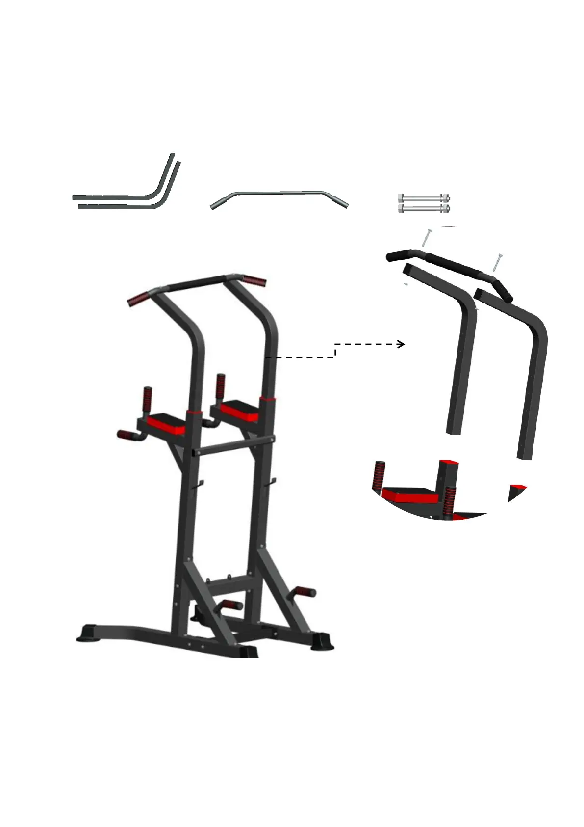 Zamocuj drążek na górnej ramie za pomocą śrub M8×75mm. Następnie zamocuj ramę górną