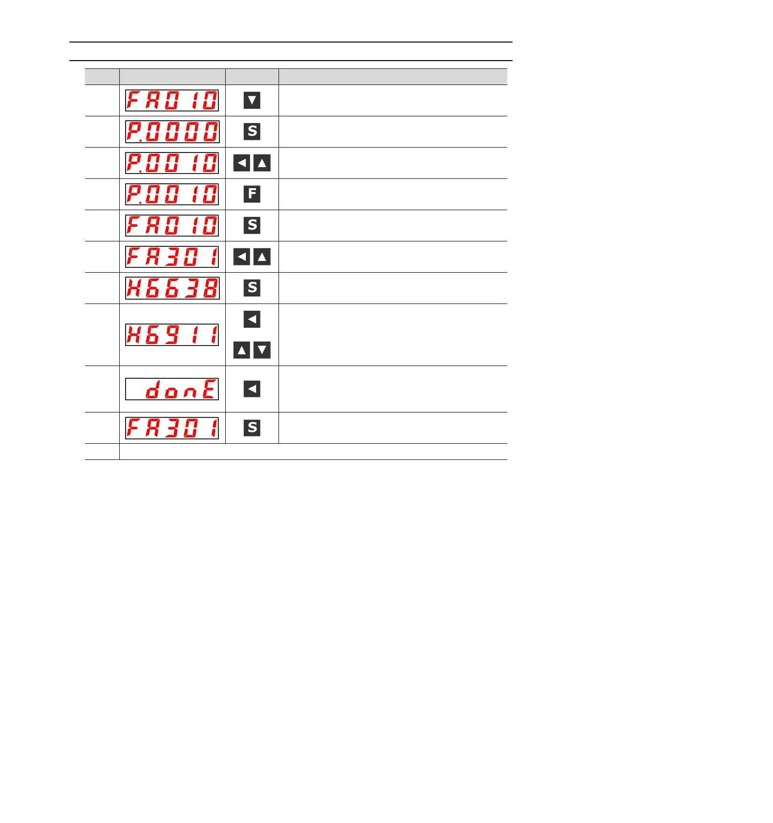 Press the S key to return to the "FA010" display.