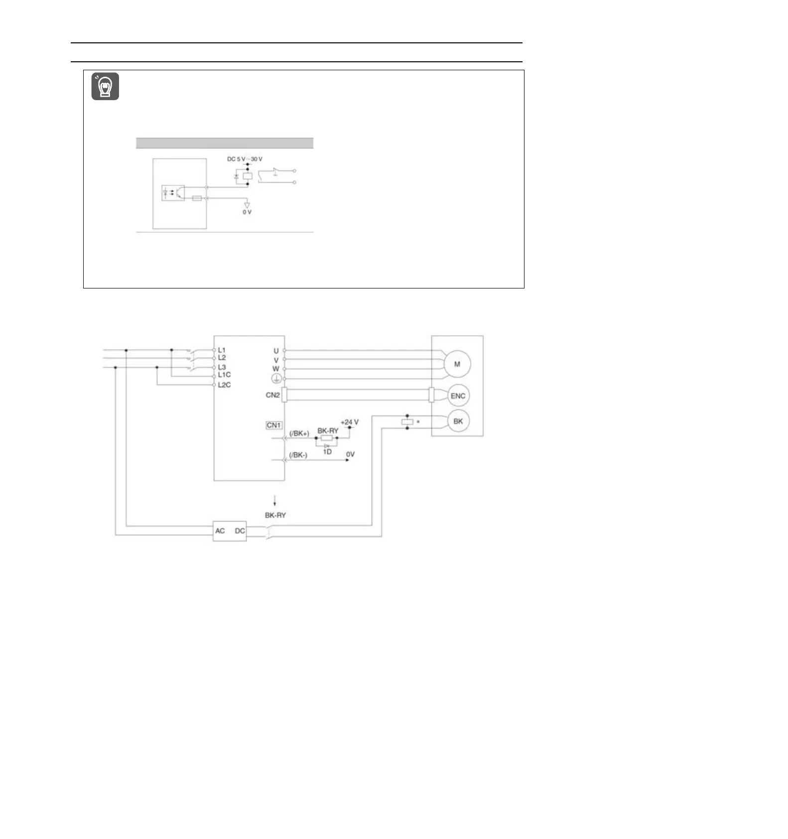 When using the 24V brake, the DC 24V power supply must be separated from the input and output signals