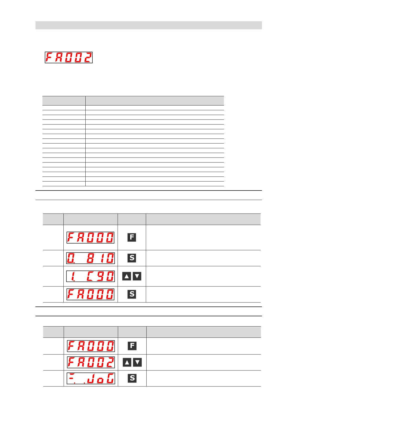 UP or DOWN key display "FA002".