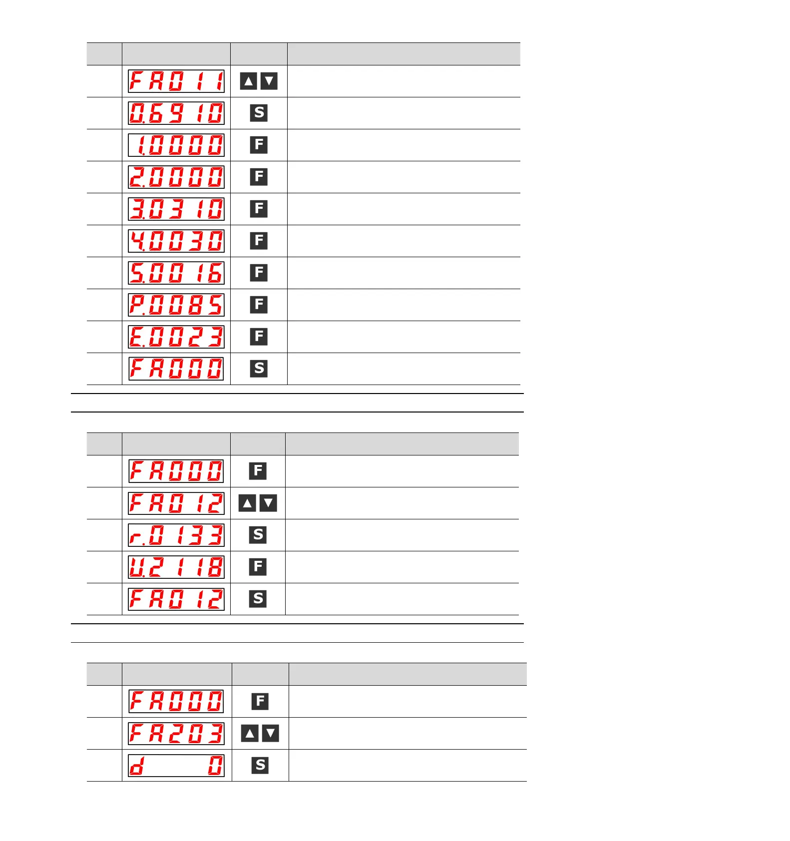UP or DOWN key display "FA012".