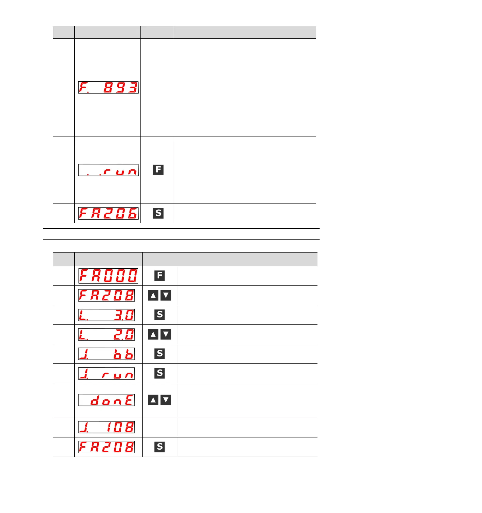 Press the S key again to return to the display of "FA206".