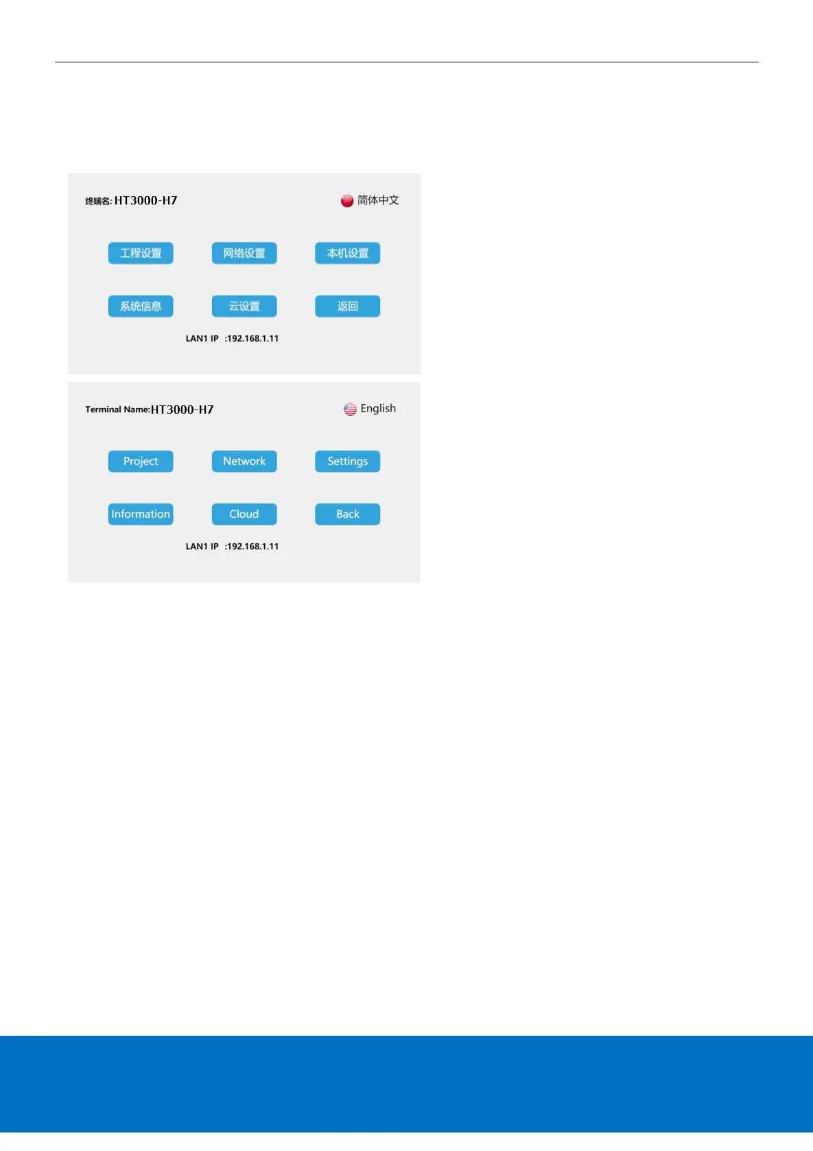 system language, the device supports two languages: simplified Chinese and English.