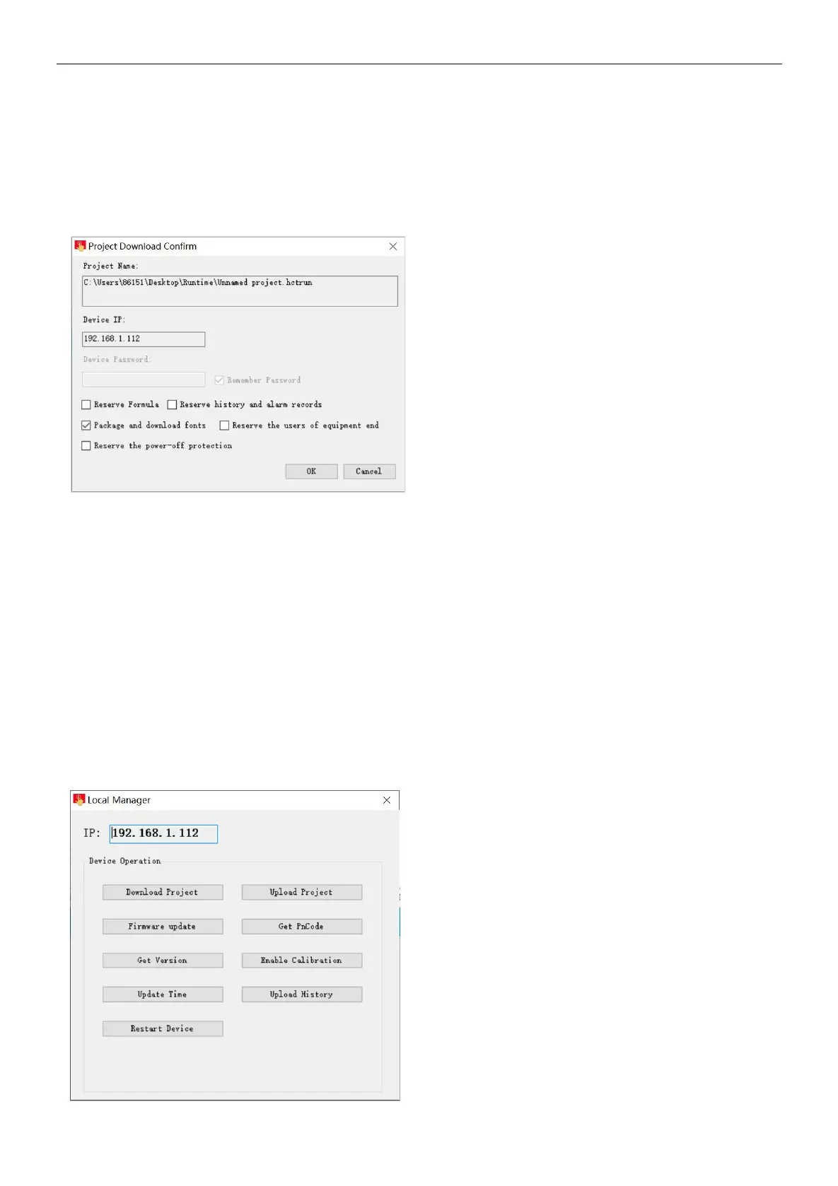 Open the HTCloud Designer software in computer, click the device manager icon of menu; or click the [project}, open the